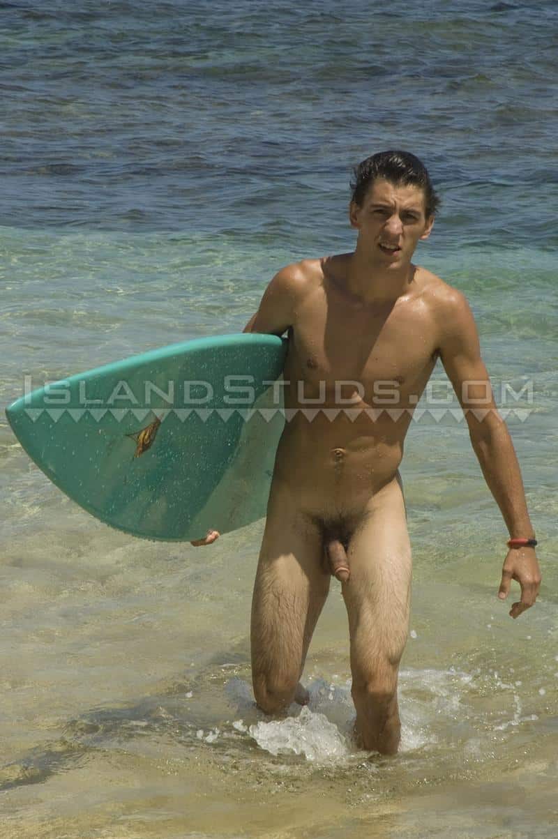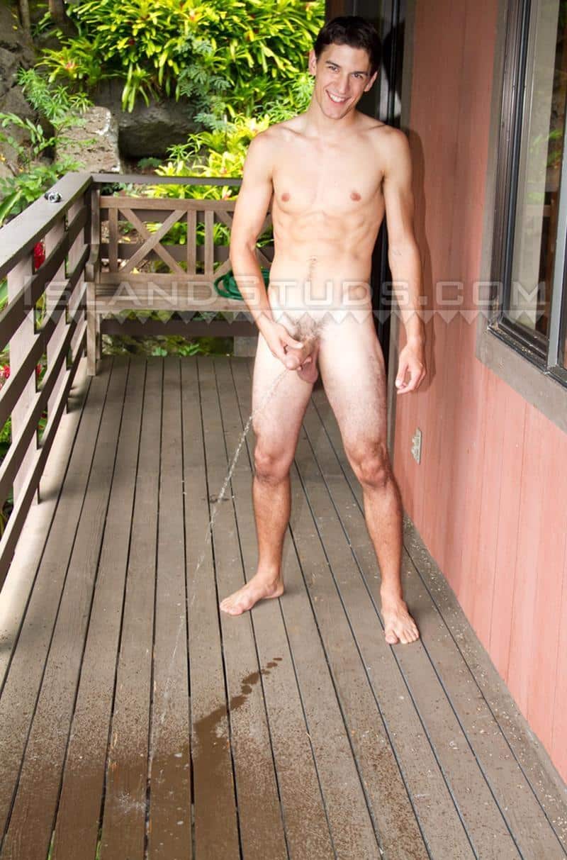 Horny young lifeguard Darren pisses and jerks his huge 9 inch cock outdoors Island Studs